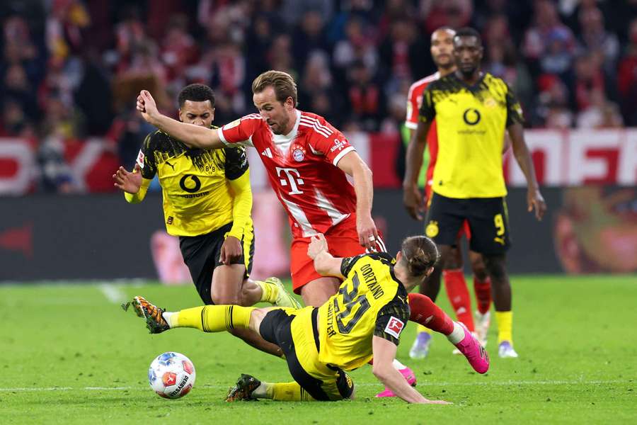 Goście od początku musieli odpierać groźne ataki Bayernu. Francuz Michael Olise wbiegł w pole karne, przedryblował obrońców, lecz jego potężny strzał został obroniony przez Gregora Kobela. Szwajcarski bramkarz BVB wykazał się również, gdy zatrzymał uderzenie Kolumbijczyka Luisa Diaza.