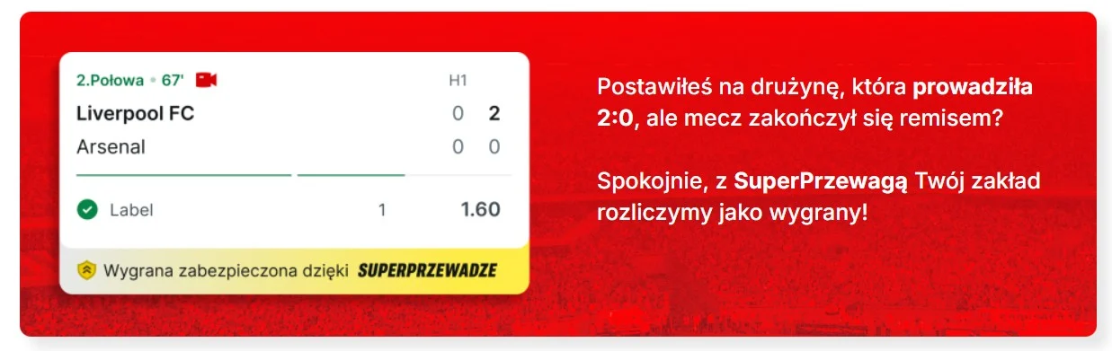 Przykładowo: Jeśli Lech Poznań prowadzi 2:0 z Lechią Gdańsk, to bukmacher rozliczy zakład na zwycięstwo “Kolejorza” jako wygrany. I to, nawet jeśli ostatecznie mecz zakończył się remisem lub wygraną Lechii (Wczesna wypłata). Tak samo, jeśli postawiłeś zakład na gola Mikaela Ishaka, ale ten nie strzelił, lecz na boisku za niego pojawił się Pablo Rodriguez. Jeśli Rodriguez trafi, to Twój zakład jest wygrany (Super Zmiana).